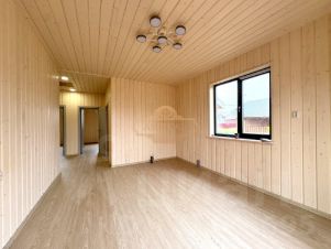 Стены - гипрок или дерево (имитация бруса) и покраска; в санузле - керамическая плитка.