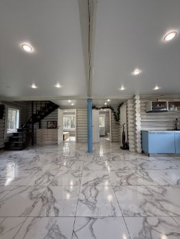 — Экологичность и качество: Дом и баня построены из отборной карельской сосны, которая славится своей плотностью и долговечностью.