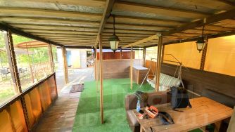 1 этаж: сауна из липовых досок. Печь на камнях. Небольшая комната перед входом с кожаной мебелью, с видом на камин от печки. Душевая с тёплой водой от нагревателя. Холодильник. Окна стеклопакеты. Кухня: привозной газ, электрическая плитка, электрический умывальник. Мебель удобная. Прихожая. Выход на террасу. С террасы выход на крытый танцпол 5*6, с кожаными диванами и столом. Танцпол покрыт искусственной травой.