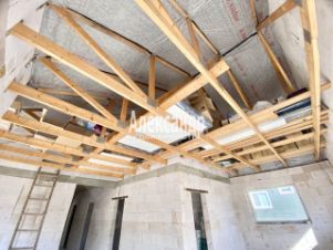 Характеристики дома: Фундамент - Ж/Б плита 300 мм, бетон Б35, утепленная полностью 100 XPS. Стены несущие - газоблок ЛСР 400 мм, плотность 400, утепление не требуется. Перегородки внутренние - газобетон 150 мм. Кровля - металлочерепица, стропильная система из дерева (фермы с завода), утеплена ватой в 3 слоя 50*3=150 мм. Пластиковые окна Rehau с армированием 2 мм с напылением и аргоном.
