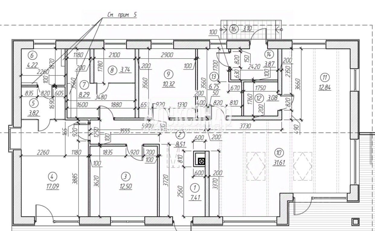 Мастер-спальня: 17,09 м2 + (гардеробная 3,82 м2, санузел 4,22м2)