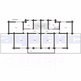 На первом этаже расположены просторная кухня-столовая, зонированная гостиная, два санузла, кладовые комнаты, котельная и большая открытая терраса; на втором этаже шесть спальных комнат, санузел, балкон.