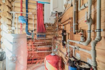 В доме установлены газовый и электрический котлы, на первом этаже тёплый пол. Канализация - септик, водоснабжение из колодца. В доме установлены сигнализация, видеонаблюдение, датчики движения для освещения.