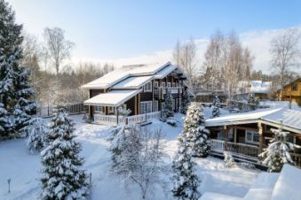 Дом выполнен из калиброванного бревна лиственницы и кедра. Фундамент - бетонная монолитная плита, кровля из металлочерепицы. Высота потолков 3 метра.