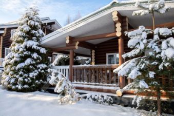 Уютный банный дом включает в себя большую гостиную, сауну и санузел. Фундамент-монолитная плита. Он также построен из калиброванного бревна, тёплый пол, оснащён газовым котлом.