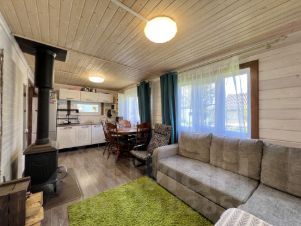 В большом доме установлены два бойлера: один для кухни, другой для санузла. Электричество 5 квт. Обогрев дома осуществляется с помощью чугунной шведской дровяной печи Jotyl f8.