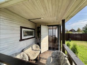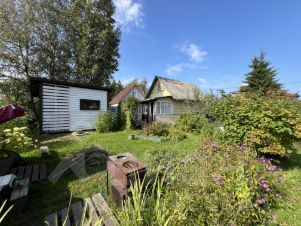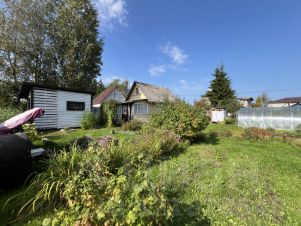 Под небольшим домом есть кессон, где можно организовать баню с собственной водой. На участке также имеется летний душ с электрическим подогревом. Кроме того, есть отдельно стоящий хозяйственный блок с дровником. На лицевой стороне участка забор из профлиста и откатные ворота.