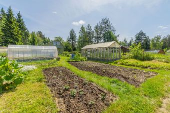 Участок ровный, находится на естественной возвышенности, сухой в любую погоду и время года. На участке растут две плодоносящих яблони, сливы. Имеется богатый на урожай огород, две теплицы. Взрослые и спокойные соседи только с одной стороны.