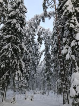 Сам лес смешанный - еловый, сосновый. Растут грибы и ягоды.