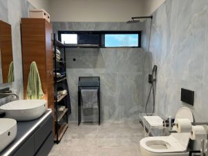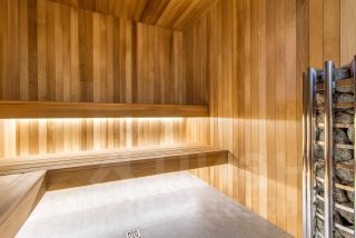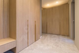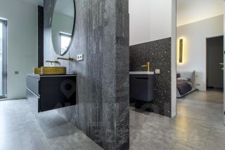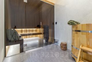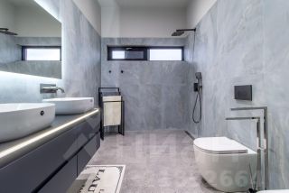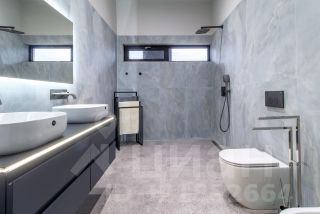 В доме большая гостиная и кухонная зона (100 кв.м), три спальни, мастер-спальня с выходом в банный комплекс, гардеробная, два санузла с душевыми, сауна, котельная, входная группа с санузлом, терраса по всему периметру дома с возможностью выхода на нее из любой комнаты.