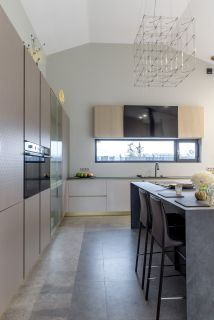 В доме очень много пространства и воздуха. Дом стильный и большой.