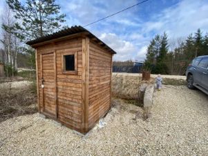 На участке установлена жилая бытовка с кухней и диваном (плюс хозблок)