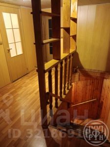 На первом этаже расположены: прихожая, кухня, спальня, ванная, гардеробная и две деревянные лестницы с разных сторон дома.