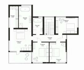 На втором этаже дома располагается мастер-спальня с гардеробной и просторной ванной комнатой, две детских комнаты, гостевая спальня и еще одна ванная комната.