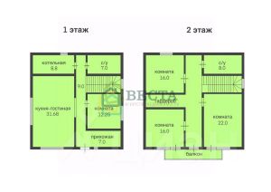 Есть всё необходимое для комфортного проживания: просторная кухня-гостиная 32 кв.м., 3 вместительные спальни 16-22 кв.м. на 2 этаже + 1 спальня или кабинет на 1 этаже, 2 санузла, прихожая и гардеробная. Места хватит всем.