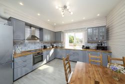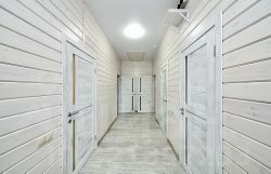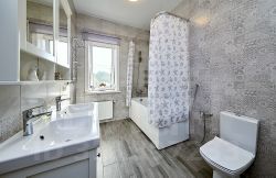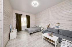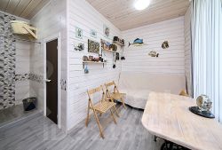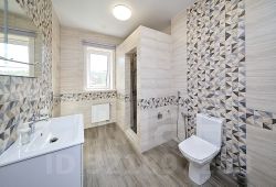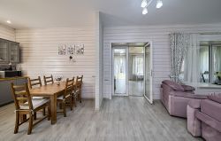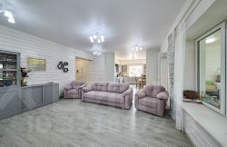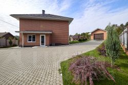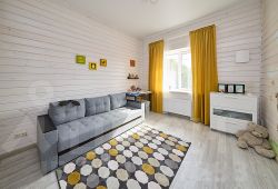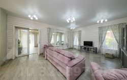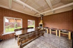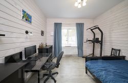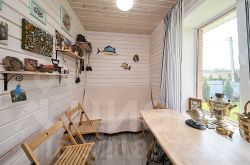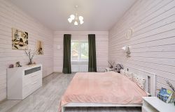 Сам дом построен из керамического блока и облицован кирпичом — крепкий, надёжный и экологичный. Межэтажные перекрытия выполнены из железобетонных плит, в стенах нет утеплителей, значит, гнить и разрушаться нечему. Внутренняя отделка — имитация бруса и плитка в санузлах, потолки высотой 3 метра на каждом этаже создают ощущение простора. Планировка продумана до мелочей: пять спален, кухня-гостиная, два санузла, две кладовые, прихожая, холодный тамбур, тёплая веранда и даже парная с комнатой отдыха. Отопление — тёплый пол с радиаторами. Вся мебель и техника остаются для новых хозяев.