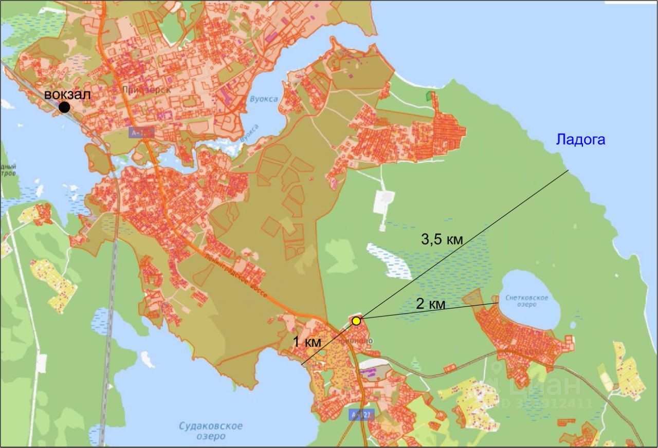 • Местоположение участка п. Ларионово, в непосредственной близости от г. Приозерска (при необходимости -общественный транспорт, школы, детские сады, больница, места проведения досуга)