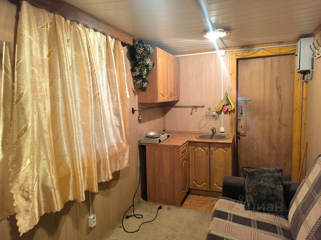 Стоит небольшой, утеплённый домик с верандой., куда проведено электричество 5 кВт (можно увеличить до 15 кВт в кратчайшие сроки), и заведена вода.