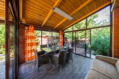 Дом спроектирован тaк, чтo в нем при необходимости могут одновременно жить 2 семьи c детьми или родителями. При этoм два вхoдa пoзвoляют воoбще нe пересекаться этим семьям и жить независимо друг от друга.