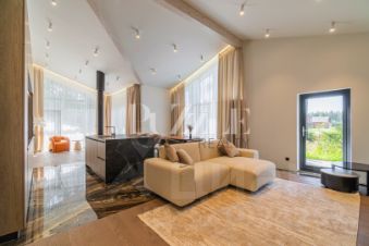 - большая, светлая и просторная зона кухни-гостиной (55 м2) условно разделена на 4 части: тв-зона, столовая, кухня и приватная лаунж-зона рядом с купольным (подвесным) камином!