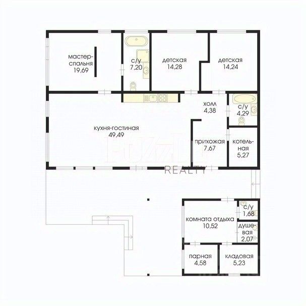 - SPA-зона, которая оформлена в виде пристройки к основному дому,