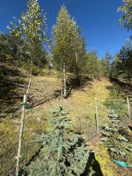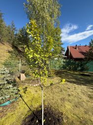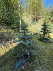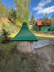 На участке посажены деревья, кустарники, растет клюква, черника и даже грибы.