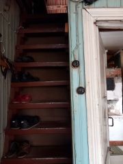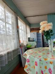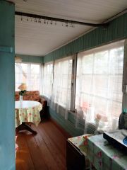 Дом 80 м² на возвышенности, прочный бетонный фундамент, отапливается печью, сложенной по финской технологии, на ней же можно готовить. Большая светлая веранда с распашными окнами - излюбленное место для отдыха и чаепития, кроме того на 1 этаже - кухня и 3 спальные комнаты, на 2 этаже - одна большая спальня.