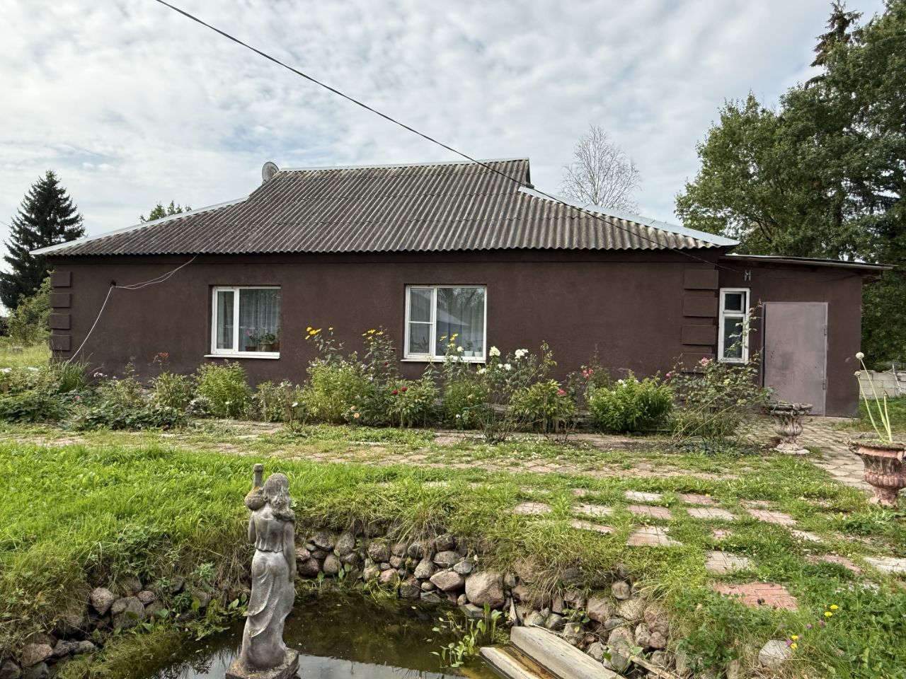 Участок 17,69 соток сухой и ровный. Перед домом участок вымощен тратуарной плиткой,а также перед домом находится искусственный фонтан. Вся территория огорожена металлическим забором с воротами и калиткой.