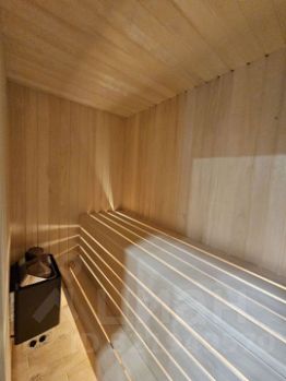 Первый этаж: прихожая, кухня- гостинная,2 спальни со своими гардеробными, котельная, душевая, сауна и туалет.