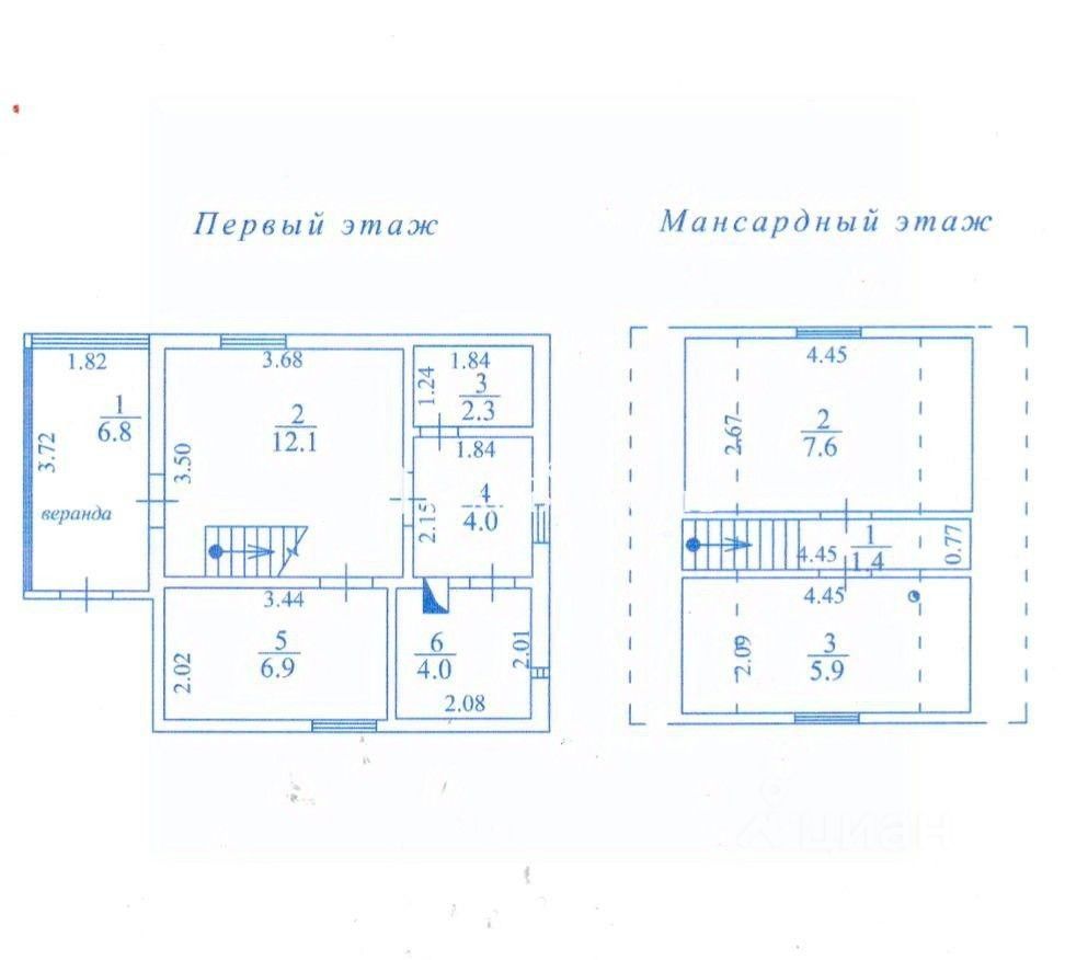 В доме 2 этажа, второй мансардный с двумя спальнями.