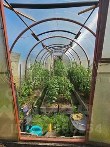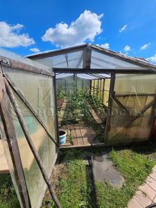Участок 10 соток, разработан, грядки, плодовые деревья очень много малины.