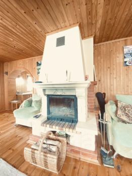 На первом этаже: открытая веранда для отдыха, прихожая, туалетная комната с душевой кабинкой и нагревателем воды Термекс, кухня, гостиная с камином (Италия), 2 точки ТВ