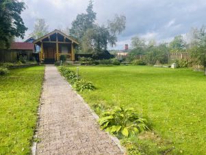 На одной части участка сохранен лес, черничник. На другой части выполнен ландшафт с большим количеством цветов,плодовых деревьев и кустарников.