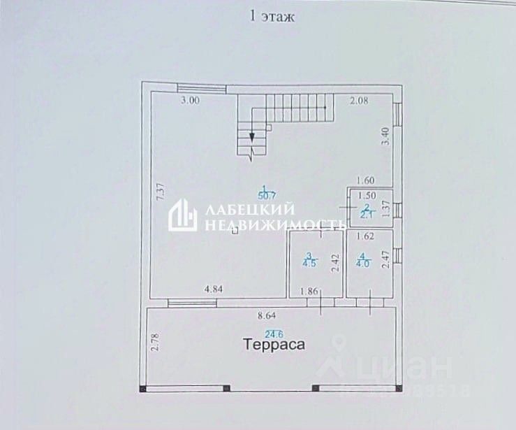 На первом этаже ПРОСТОРНАЯ и СВЕТЛАЯ кухня-гостинная (50,7 м²), прихожая (4,5 м²), санузел (2,1 м²) ,а также котельная (4.2м²)