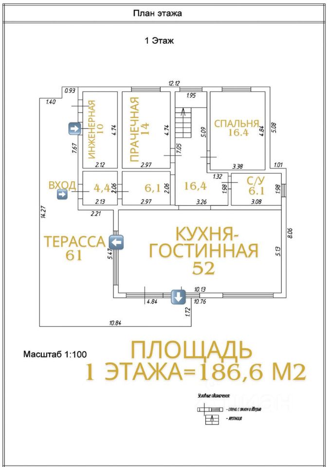 - Внешние стены и несущие стены газобетон 300 мм, перегородки - 200 мм.