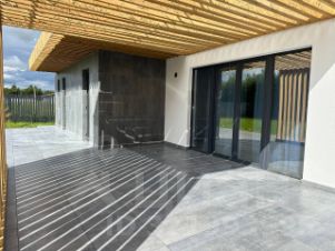 - Полы на террасе керамогранит, на балконе террасная доска, стеклянное ограждение.
