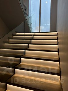 - Межэтажная лестница железобетонная монолитная с дубовыми ступенями и стеклянным ограждением.