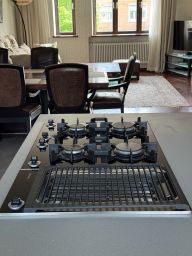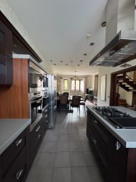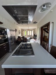 В кухне установлен полностью весь комплект бытовой техники Mielle. Все в рабочем состоянии. Холодильник Kuppersbush (рабочее состояние, не работает ледогенератор). Установлены два кондиционера на первом этаже.
