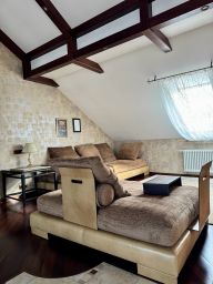 Второй этаж - две изолированные спальни. Установлена в них качественная Итальянская мебель. Также на втором этаже расположены основной санузел с ванной, душевой кабиной и просторная гардеробная. Из каждой спальни имеется выход на балкон.