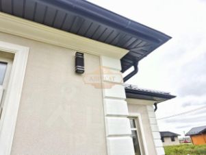Дом построен из газоблока на плите 30 см + утепление (стены несущие 45 см, межкомнатные 24 см). Крыша - 4-скатная металлочерепица, снегозадержатели и водостоки из металла, металлические перфорированные софиты. Утепление: стены - 100 мм, крыша - 150 мм. Фасад - декоративная штукатурка приятного цвета с элементами под лепнину. Стильное фасадное освещение. Подключены все коммуникации. Электричество 15 КВт 3-х фазное, скважина 12,5 м (насос, греющий кабель), канализация - биостанция. По границе участка магистральный газ.