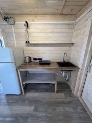 В доме две спальни и кухня-гостиная.