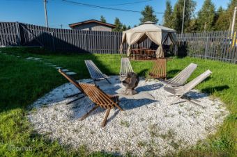 Благоустроенный участок - 7,3 сотки, позволяет реализовать максимальное количество сценариев загородной жизни (игры с детьми на свежем воздухе (есть батут), теплые встречи с друзьями(крытая обеденная зона и организованная костровая зона, организованная мангальная зона, купель с подогревом на дровах), или огород и теплицы, или все и сразу).