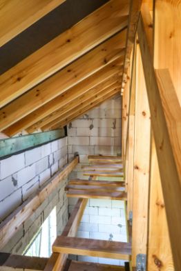 Кровля - двускатная, использована сухая строганная доска на стропила, обрешетку, контрабрешетку, металлочерепица, гидроверозащитная мембрана;