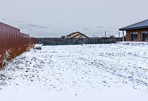 Участок 9,5 соток, правильной прямоугольной формы, отсыпан, выравнен. По периметру участка забор, штакетник металлический. Сделан заезд на участок, ворота откатные.