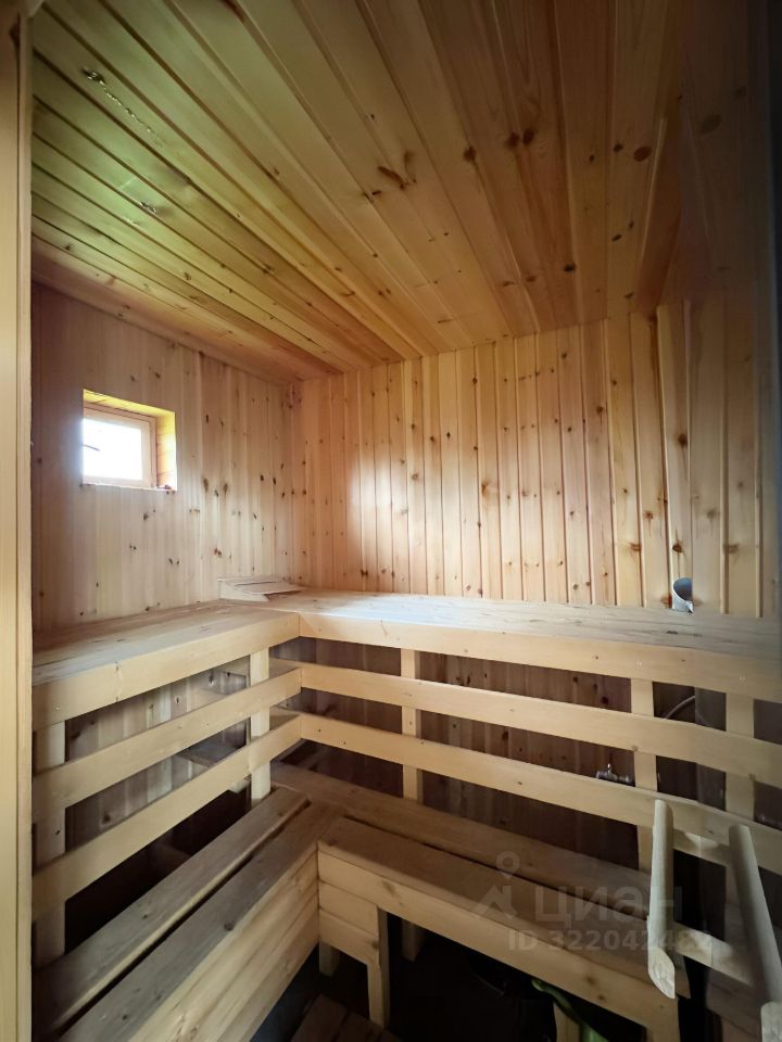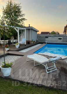 Также на участке рядом с бассейном расположена баня с небольшой комнатой отдыха и встроенной финской сауной.