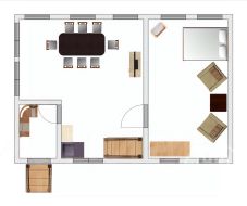 На первом этаже: прихожая, кухня-веранда, гостиная.