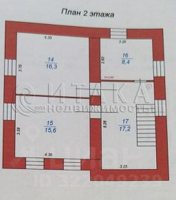 Широкая деревянная лестница ведет на 2этаж,где расположены две изолированные спальни(16,3+15,6). и санузел 8,4кв.м.
