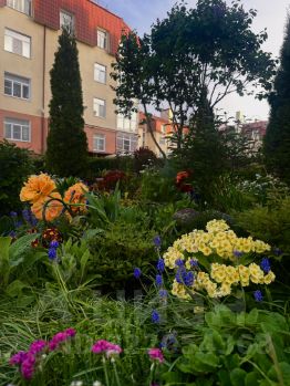 Для любителей палисадников , есть возможность укрыться от посторонних глаз за высаженными по периметру террасы высокими туями.