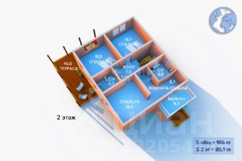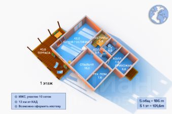 Дом площадью 244,5 м² расположен на участке 10 соток. Размеры строения 15,3 х 14,7 м, жилая площадь 148 м², теплая 193,8 м², терраса 20,7 м².