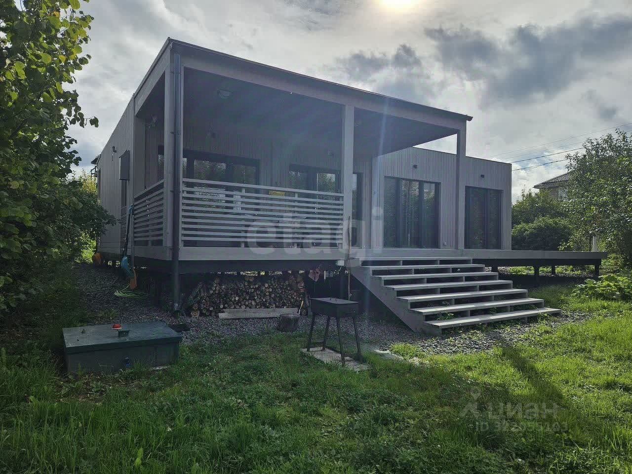 Дом расположен в престижном районе Стрельны на участке 14 соток, предоставляя возможность получения санкт-петербургской прописки. Участок обладает сложным рельефом, что придает ему особый шарм, и выходит на первую линию реки Кикенка, в 300 метрах от границы Государственного природного заказника "Шунгеровский". Основное здание представляет собой современный модульный дом для круглогодичного проживания, построенный по проекту "Растущий дом" с возможностью дальнейшего расширения. Ключевой особенностью является просторная терраса площадью 36 кв. м, половина которой оборудована как открытый солярий. Управление большей частью инженерных систем и освещения интегрировано в систему "Умный дом" с голосовым помощником Алиса, также проведен выделенный интернет-канал по оптоволокну со скоростью до 300 Мбит/сек.